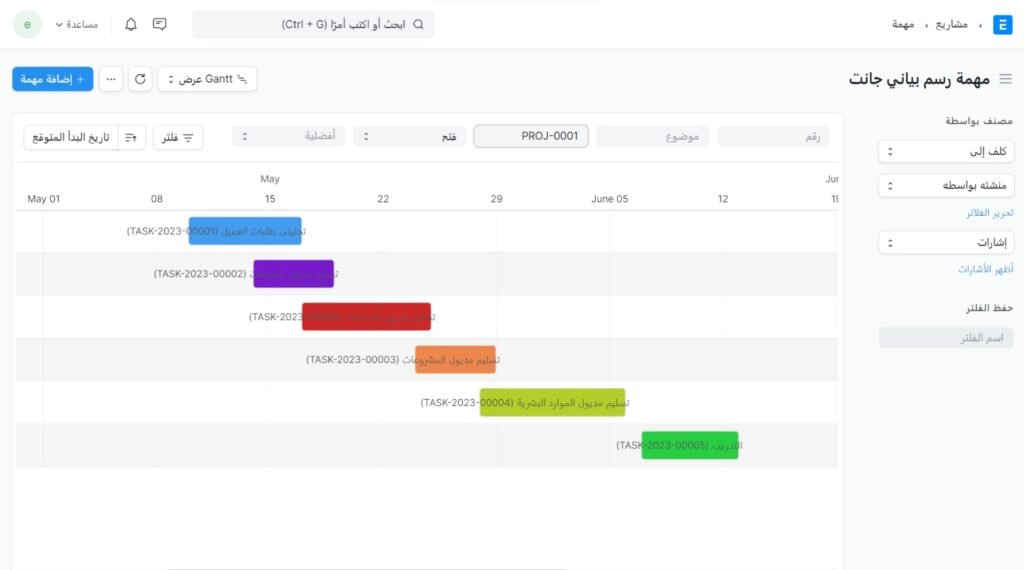 نظام ِERPNext استخدم نهجًا يعتمد على المهام لتخطيط المشاريع وجدولتها وتنظيمها وتحليلها لتسريع عملك وتحسين التواصل الجماعي داخل منشأتك.